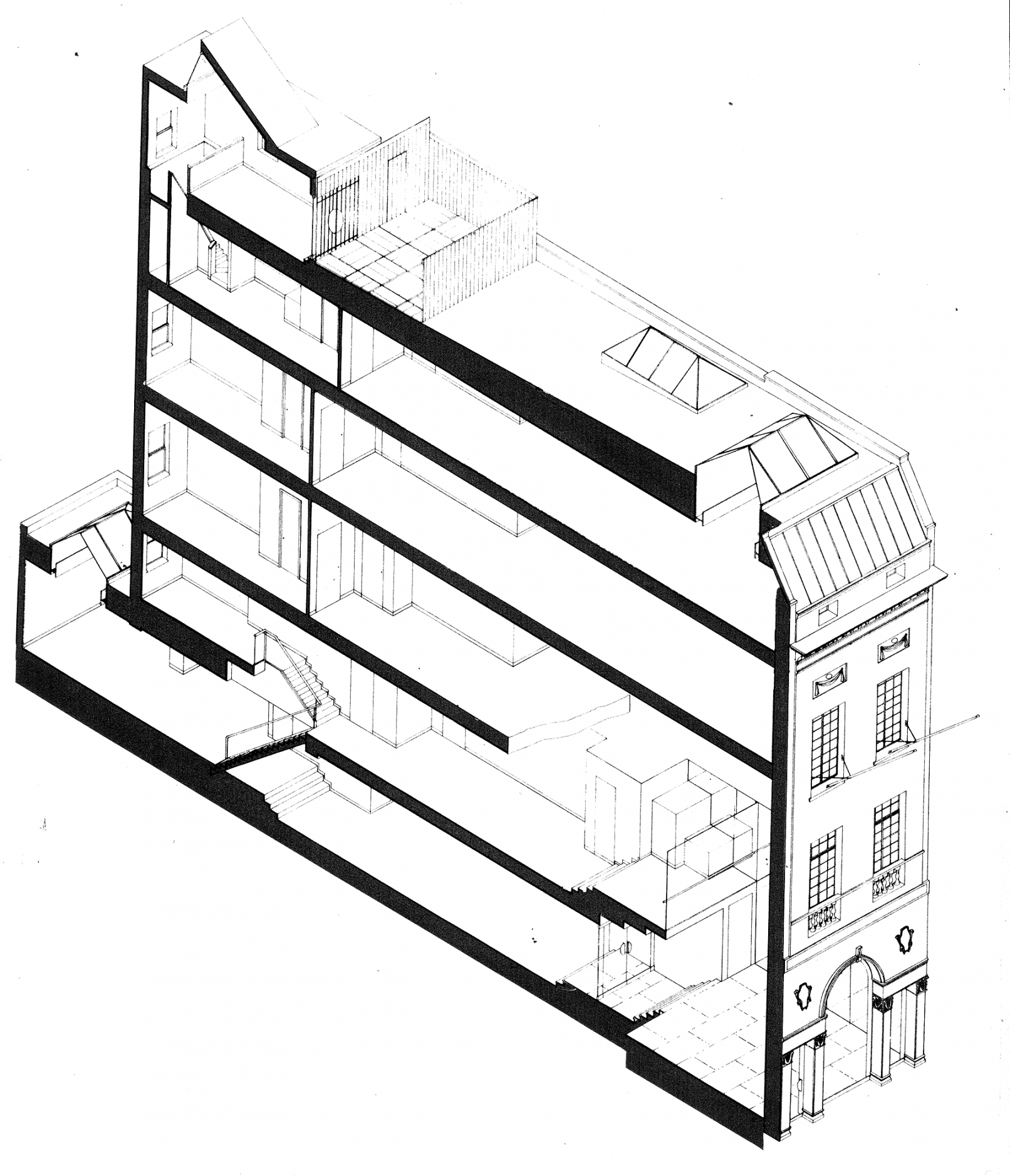 The architectural and interior design of the townhouse on 57th street, by Janko Rasic Architects and Herbert Kashian included a restoration of the facade and interior. Pierre Cardin wanted the building to function as a gallery/museum and space to serve his private couture clients flexible enough to be converted to any use. The top floor included a penthouse apartment and zen garden.